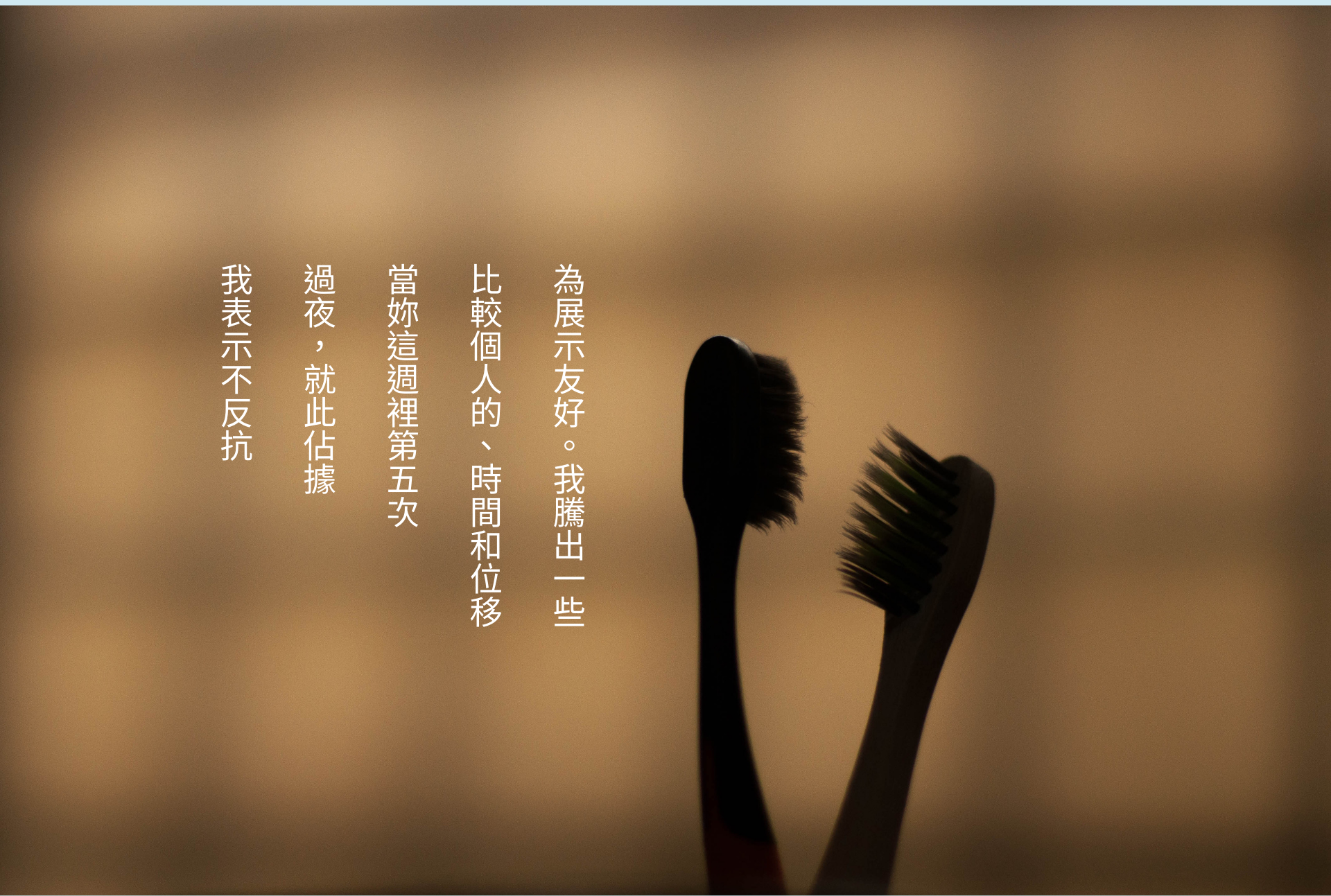 張質 11/10/25 張質 11/10/25 同居殖民主義 為展示友好。我騰出一些比較個人的、時間和位移當妳這週裡第五次過夜,就此佔據我表示不反抗 Read More 張質 10/17/25 張質 10/17/25 終點與懸浮 死亡是這麼一回事: 愛你的人相信 你一定去了更明亮的地方。 Read More 張質 10/12/25 張質 10/12/25 一個屬於斯德哥爾摩的早晨 作為世界的人質。 只要妳堅定不開「。」的門 信口就開的河從腳踝流過 今天就不會醜陋 My Belle,請留下今天吧 Read More 張質 10/5/25 張質 10/5/25 一些愚蠢之物 怒火微慍。由於一個莽撞的領悟: 為什麼會飛的 盡是一些愚蠢之物? Read More 張質 9/18/25 張質 9/18/25 米開朗基羅那樣愛你 輕輕,在你的肩窩 鑿出我的頭型 Read More 張質 8/25/25 張質 8/25/25 週末症候群,星期一 擱置的那部分自己 第六天重組,第七天吻別 一種被允許的自由 從週一開始倒數 Read More 張質 7/9/25 張質 7/9/25 代入日常 我朝未知的左邊挪了挪 擠了擠。在一起 我們恆等為日子的總數 而我的減讓 其實也是嶄新的 Read More 張質 6/18/25 張質 6/18/25 決心 我為我的道別道歉 我為我的抵達道歉 Read More 張質 6/11/25 張質 6/11/25 旅行者病 高燒、冷感、腹瀉、不解都是在地化的必經之路 Read More Older Posts 訂閱張質:偶爾一封來信 新作通知、讀書分享、短篇隨筆 Email Address 收信 歡迎成為,質的 Pen Pal