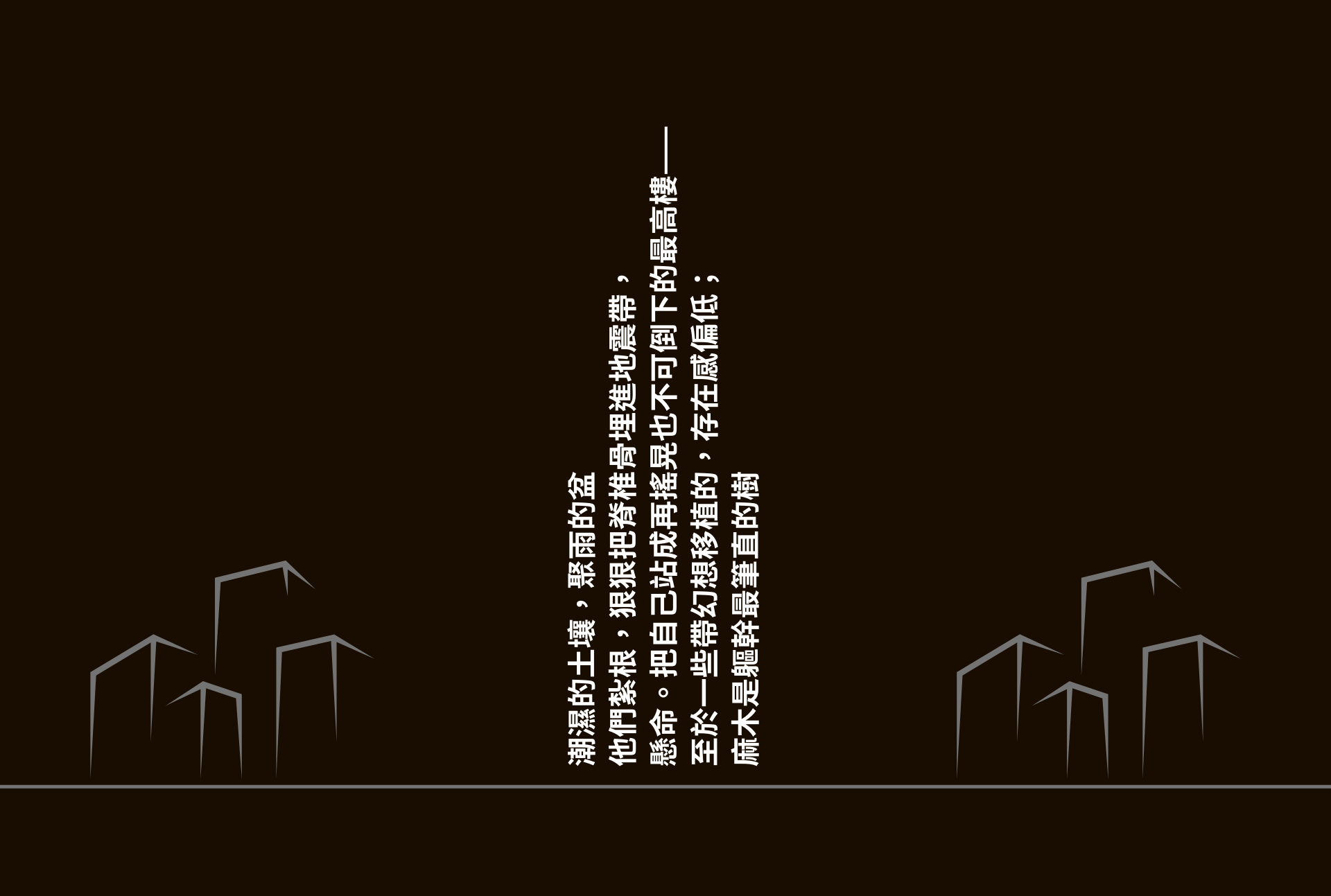 張質 3/29/25 張質 3/29/25 後句號創傷 群聚的症候群們圍起一座句號。仍在幻想。 Read More 張質 3/29/25 張質 3/29/25 台北人地標 他們紮根,狠狠把脊椎骨插進地震帶, Read More 張質 3/29/25 張質 3/29/25 死因或許只有一個: 以上有皆非的嫌疑 Read More 張質 3/29/25 張質 3/29/25 想馴服斑馬的我們被斑馬線馴服 為馴服唯一具有躲避反射的奇蹄目 馬科;以線條的形式存於城市 Read More Newer Posts 訂閱張質:偶爾一封來信 新作通知、讀書分享、短篇隨筆 Email Address 收信 歡迎成為,質的 Pen Pal